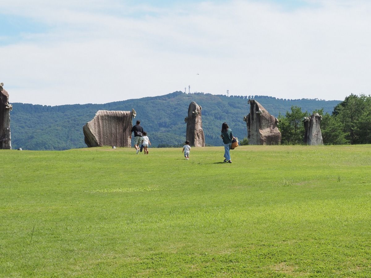 巨大な石の風ぐるま、お城の展望台、広々とした芝生広場で遊べる「うかん常山公園」