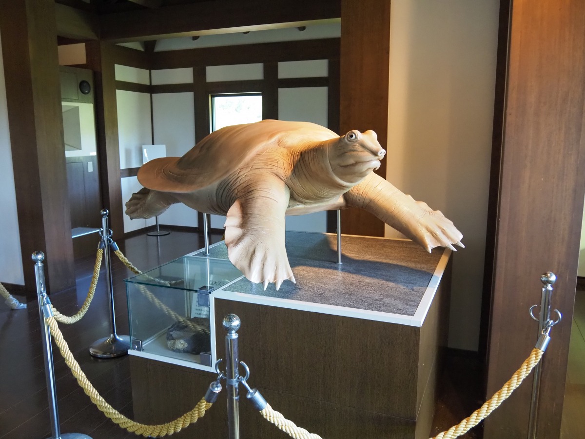 化石の展示ゾーンに突如現れる、巨大スッポンの模型!