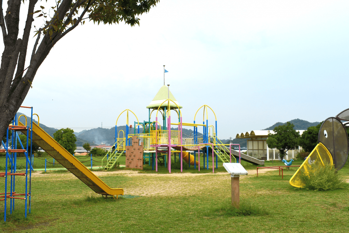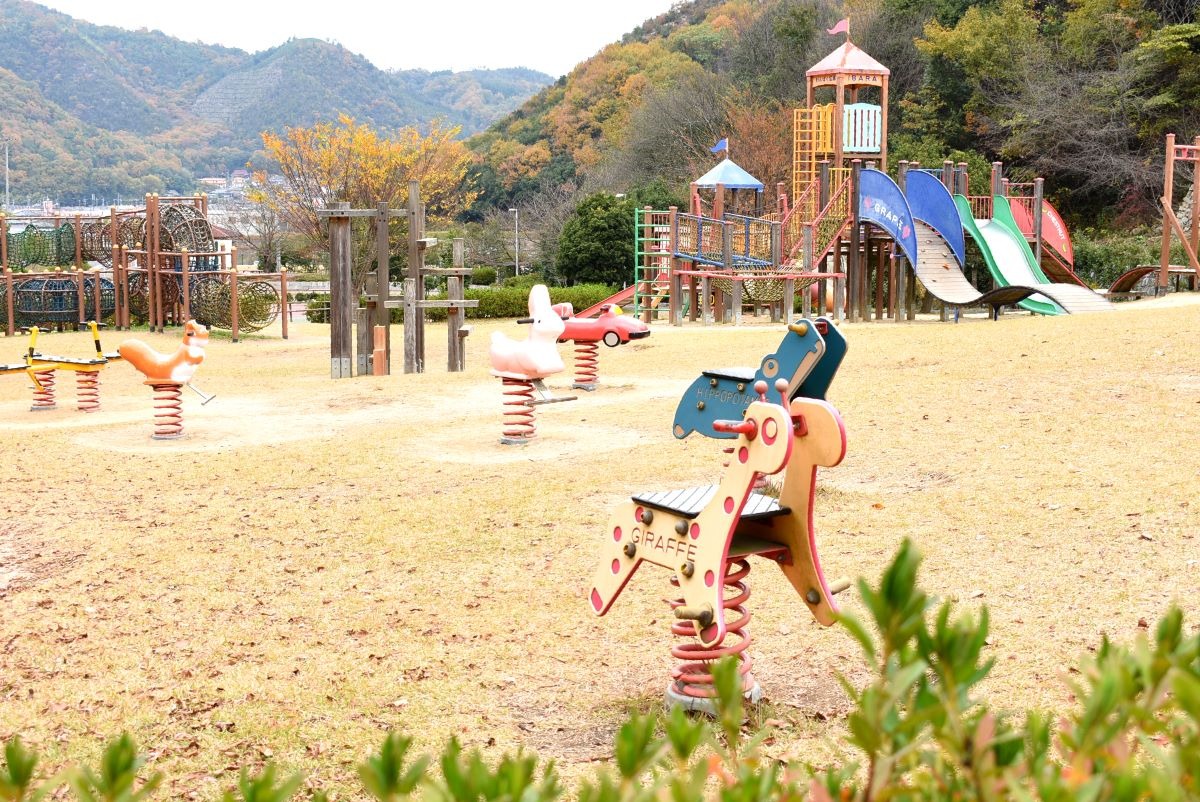 日本庭園の先にもまだまだあります、芝生や大型遊具の広場が!とにかく敷地が広いので、家族みんなで訪れてものびのび過ごせますよ。すぐ近くの嫁入らず観音でお参りしたり、車で15分ほどの経が丸グリーンパークでロング滑り台やキャンプを楽しんだり!井原の大自然をめぐり尽くしちゃいましょう。