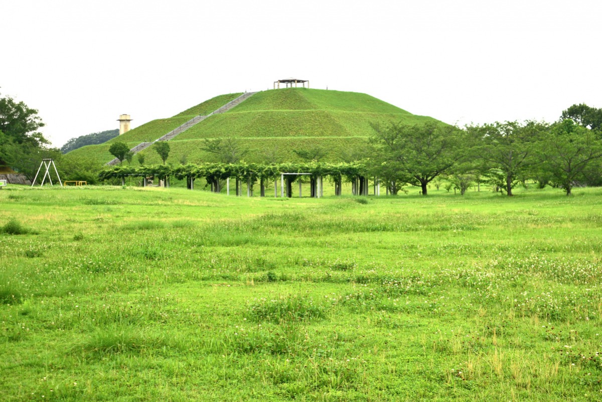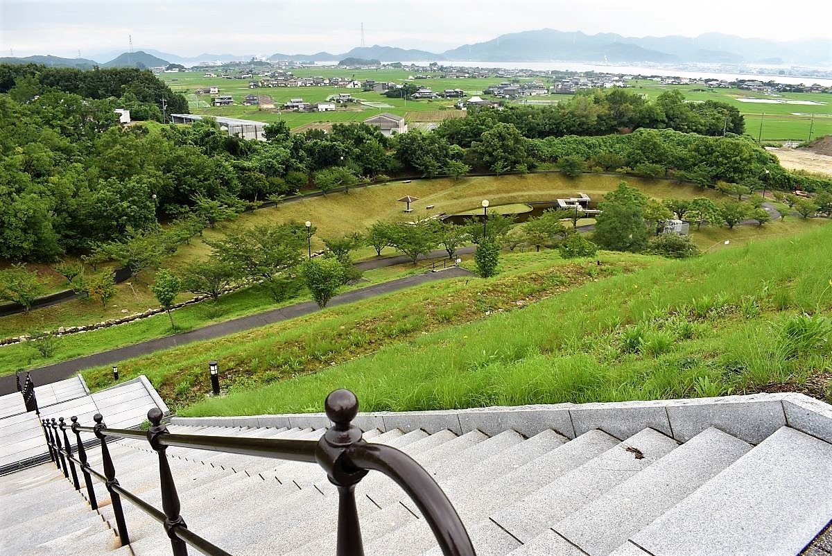住宅街の中にピラミッドのような緑の遺跡が!?春には梅まつりで有名な神崎緑地の奥には、三段になった不思議な丘の展望台だけでなく、干拓地の歴史を語る石の水門などもあったり、ジグザグ橋の池や滑り台もあるので、散策しながら楽しめますよ!