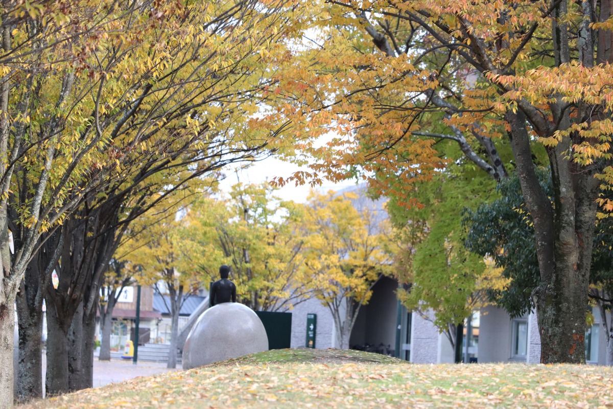 ZIPアリーナの北側、メインエントランス広場の並木道はカエデのイエローがきれいです。