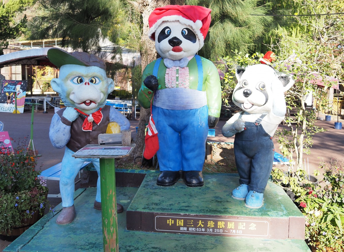 昭和63年に開催された「中国三大珍獣展」のレトロな記念モニュメントが出迎えてくれました。