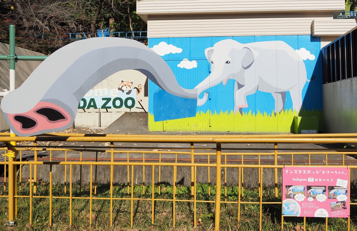 こちらは2016年までゾウのメリーちゃんが暮らしていた場所。今は大きなトリックアートが撮影できるフォトスポットになっています。
