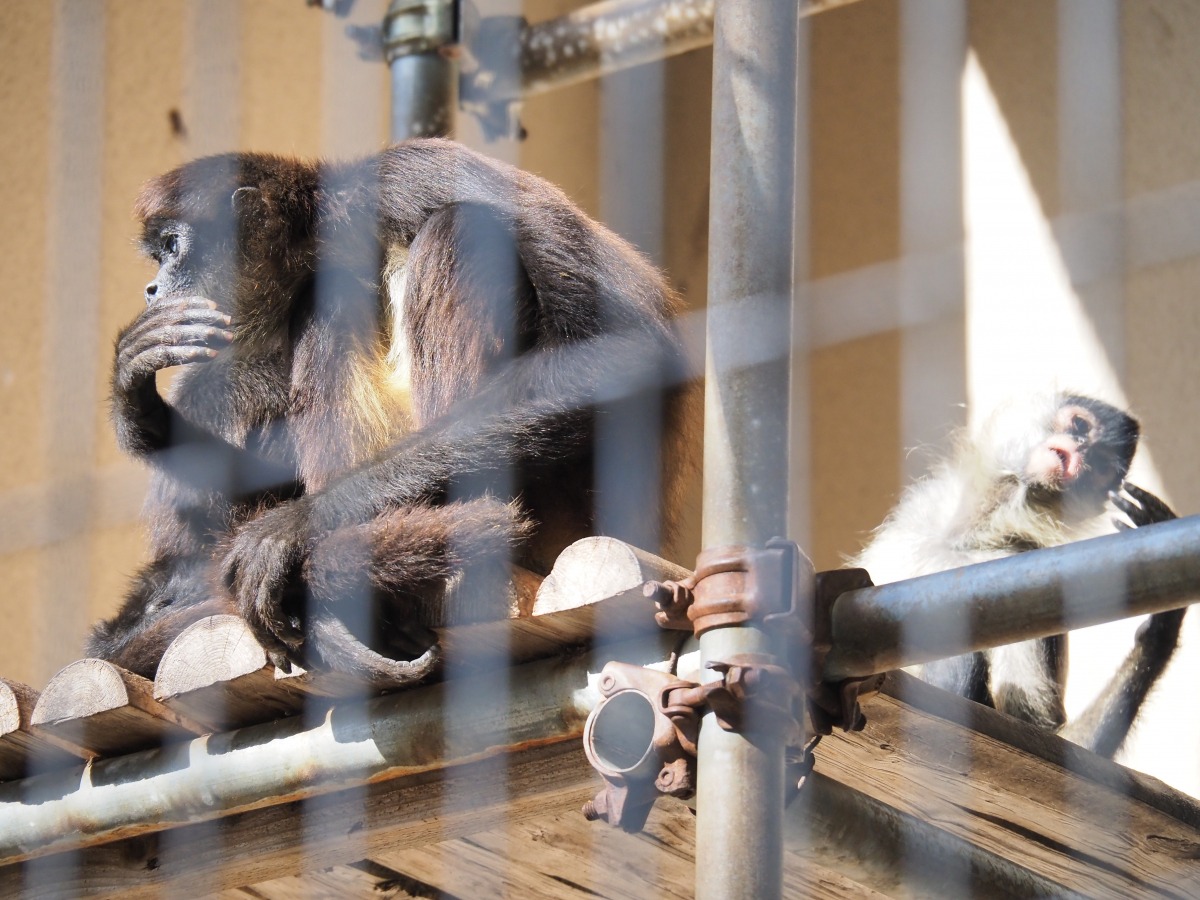 中米からコロンビアにかけて生息しているクモザル科の動物だそうです。大人の真似をしている子ザルがかわいかったです。