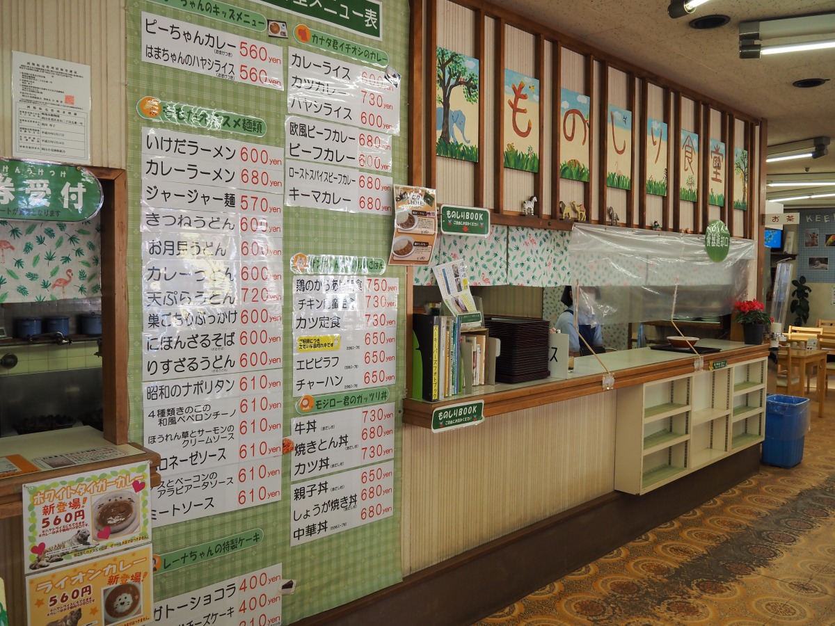 ものしり食堂には動物をテーマにしたメニューのほか、うどんやからあげなどで腹ごしらえができます。