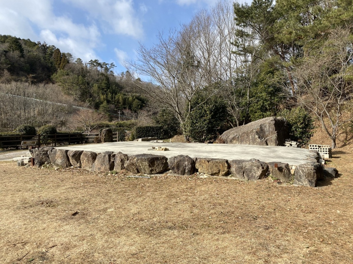真星 星の村キャンプ場は、もともとは地域の寄り合いの場として誕生したそうで、イベント用につくったお手製のステージもあります。