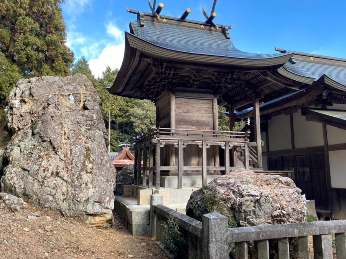 およそ1300年前に天から落ちてきたとされる三つの星(岩)が祀られています。とても大きく、驚きました。