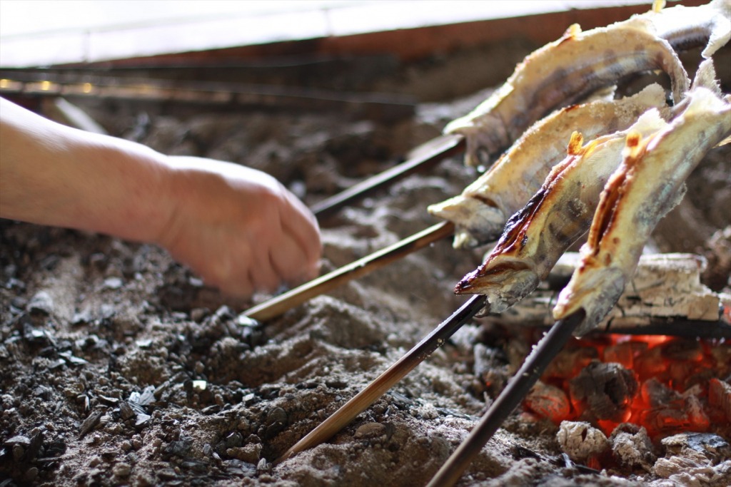 自然豊かな場所に茅葺屋根の建物があり、まさに田舎のイメージそのままの風景。季節の山菜を使った天ぷらやだんご汁、炭火でじっくりと焼きあげたあまご(ひらめ)が味わえます。