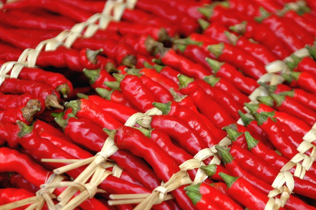 鮮やかな赤色で長さが平均15cmもある大型の唐辛子です。口に入れてから1~2秒遅れてくる辛さが特徴です。唐辛子の醤油やドレッシングなど「辛美人」シリーズの特産品もあります。