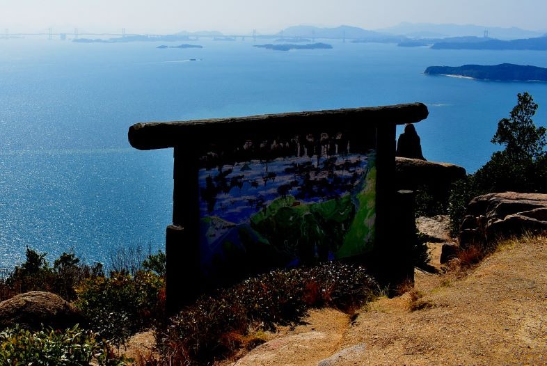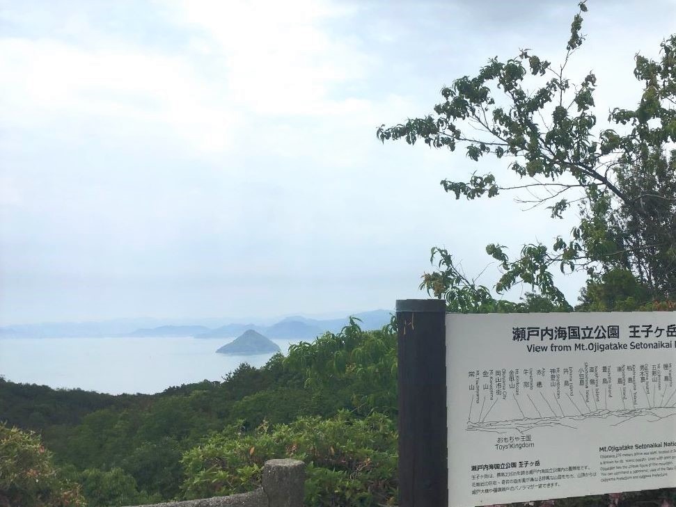駐車場で車から降りたとたん、目の前に瀬戸内海の景色が広がっています!普通ならこれだけでも十分な絶景なのですが、王子が岳ではまだまだ序の口。歩を進めて、想像の上を行く美しい世界へ!看板で、瀬戸内の島々の名前をインプットしておくと、さらに道中楽しめますよ。
