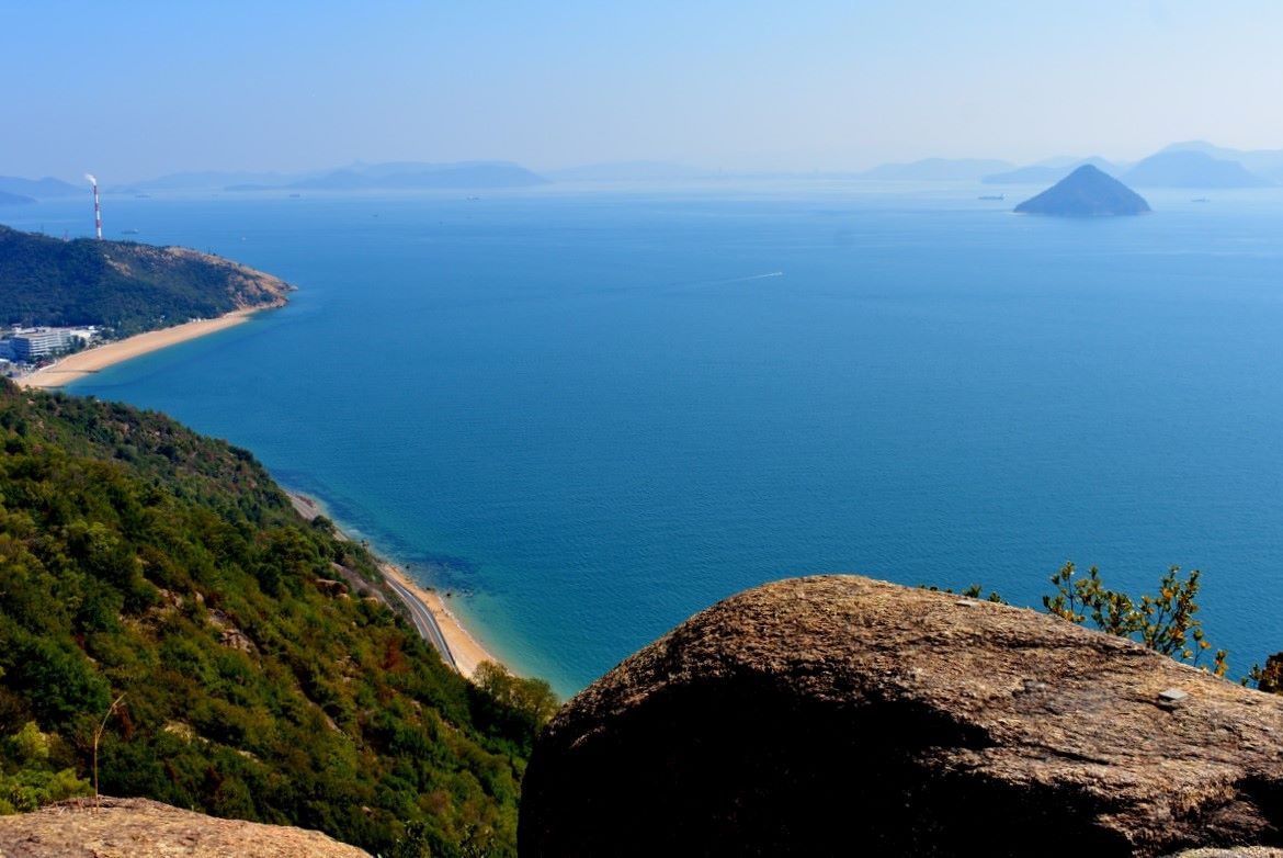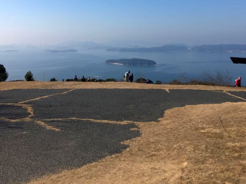 少しずつ海が大きく見えてきます!晴れていれば長~い瀬戸大橋だって、端から端まで拝めてしまいますよ。道すがら、ベンチや岩の上に座ったり。空を仰いで寝転んでみたり。思い思いに景色を楽しみましょう。吹き抜ける風も実に爽快です。