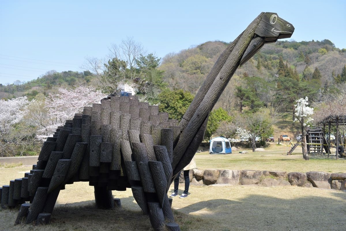 首も尾も長い超大型ディプロドクス。海生は虫類エラスモサウルス。こんなにリアルな恐竜たちを、無料で鑑賞できるなんて信じられない。クオリティの高さピカ一の恐竜公園です。図鑑の中の世界のような園内には、恐竜デザインがおしゃれな遊具も。外で存分に遊んだら、いざ隣接のカブトガニ博物館にも!