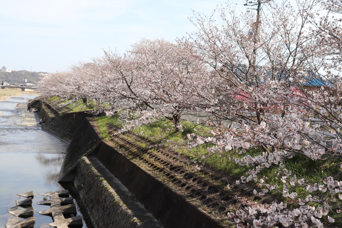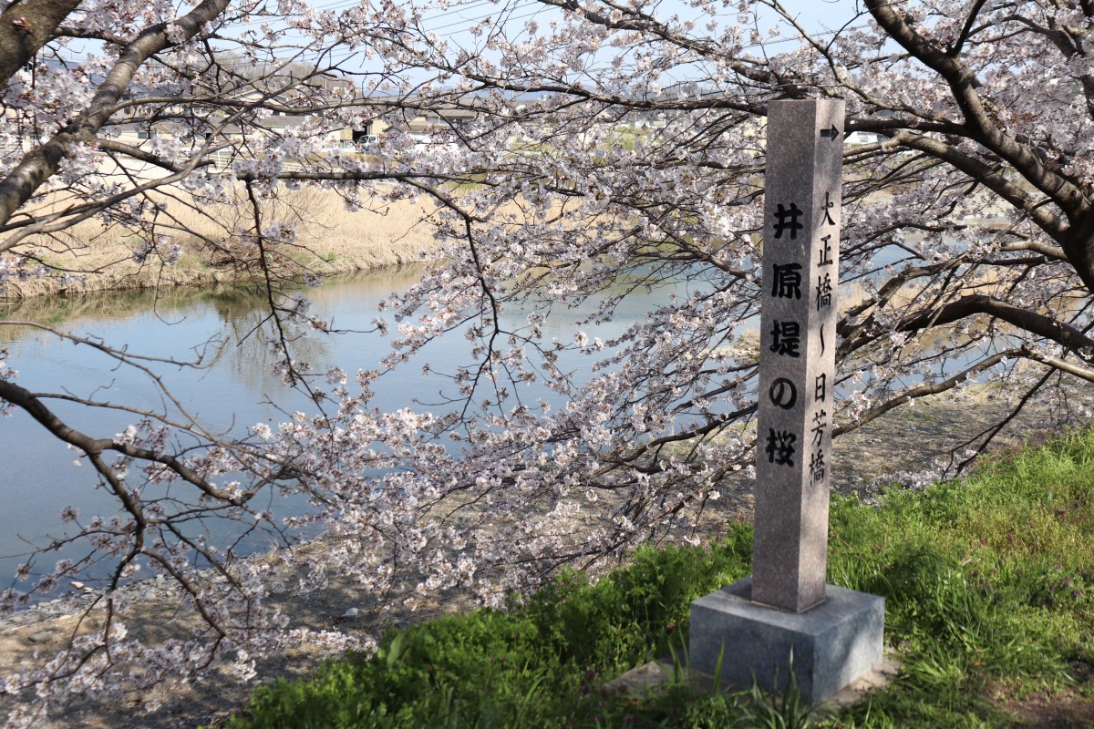 例年よりもかなり早く井原堤の桜は開花したそうです。3月26日の写真です。7~8分咲きぐらいでした。
