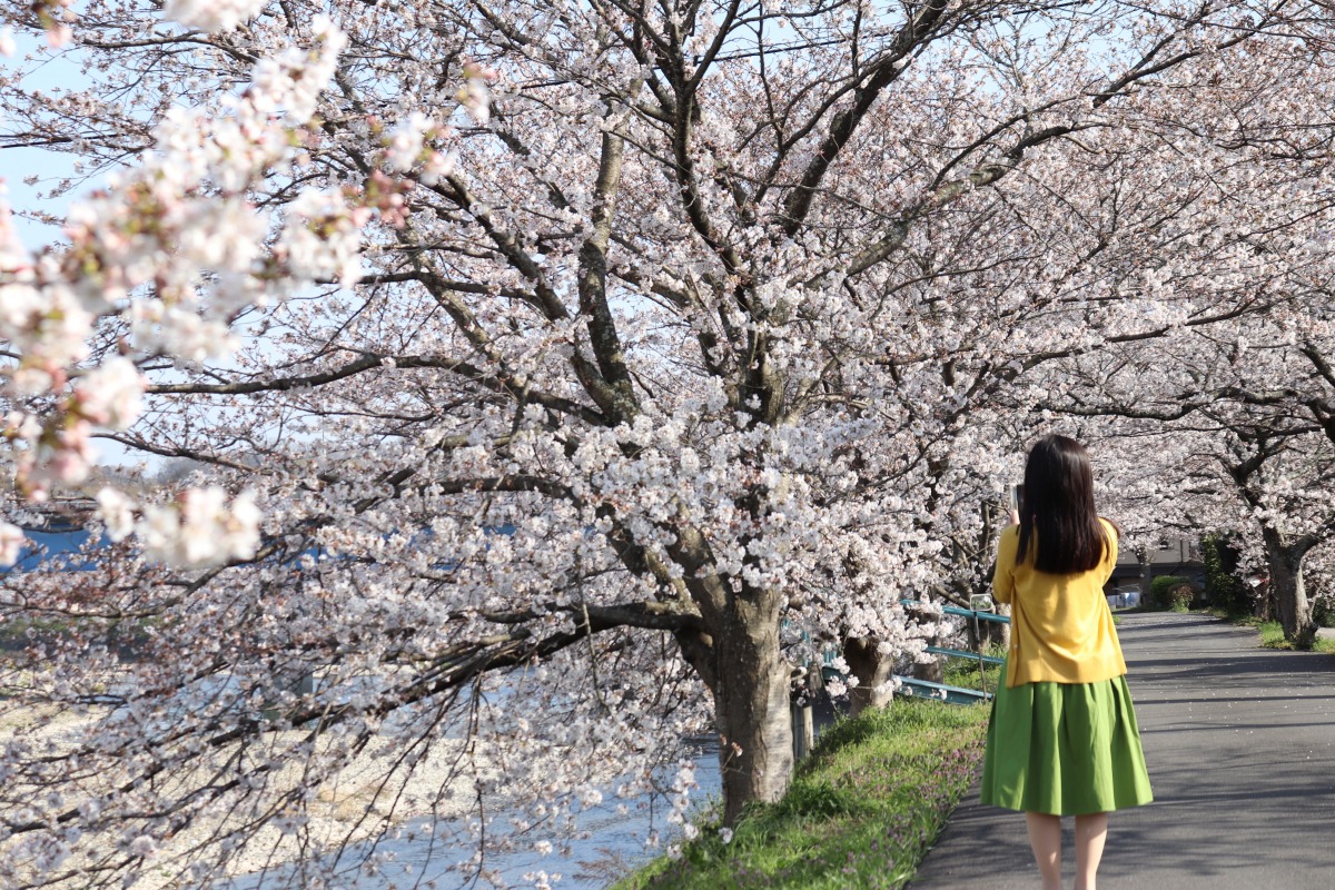 桜と共に春のお花たちが咲いていました。沿道のチューリップ、コデマリ、菜の花、ハナモモなどが見頃を迎えていて、毎日ウォーキングを楽しまれている方も多いそうです。