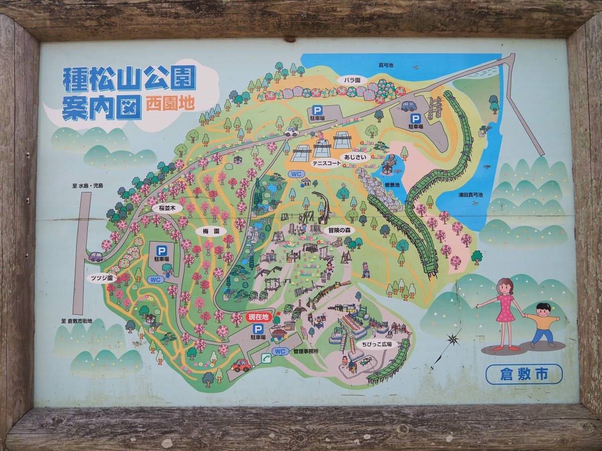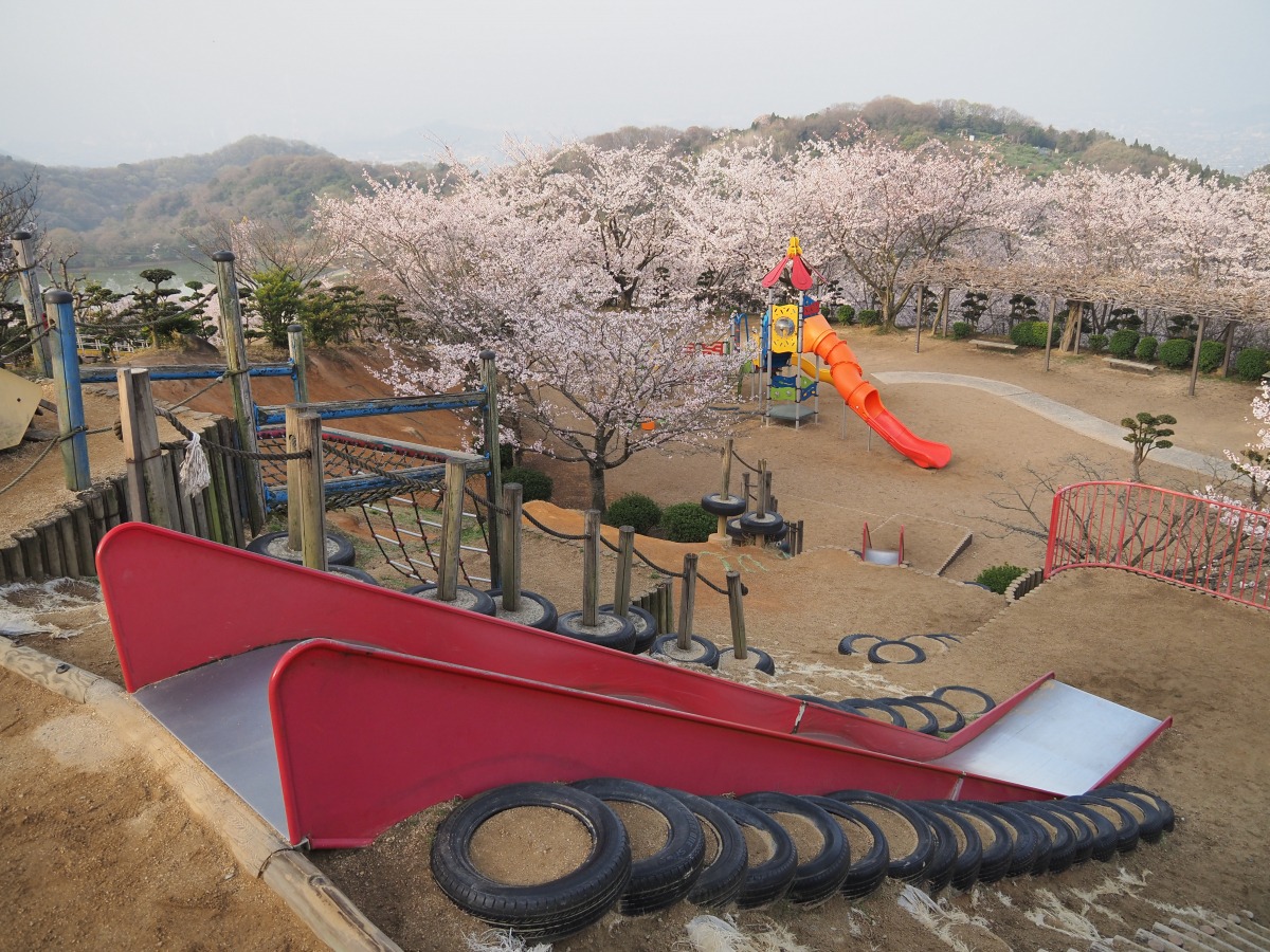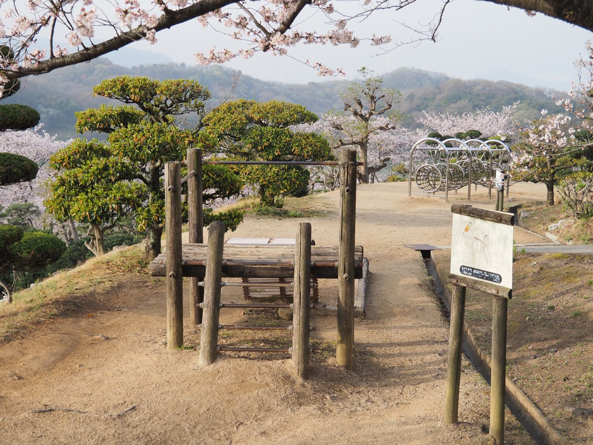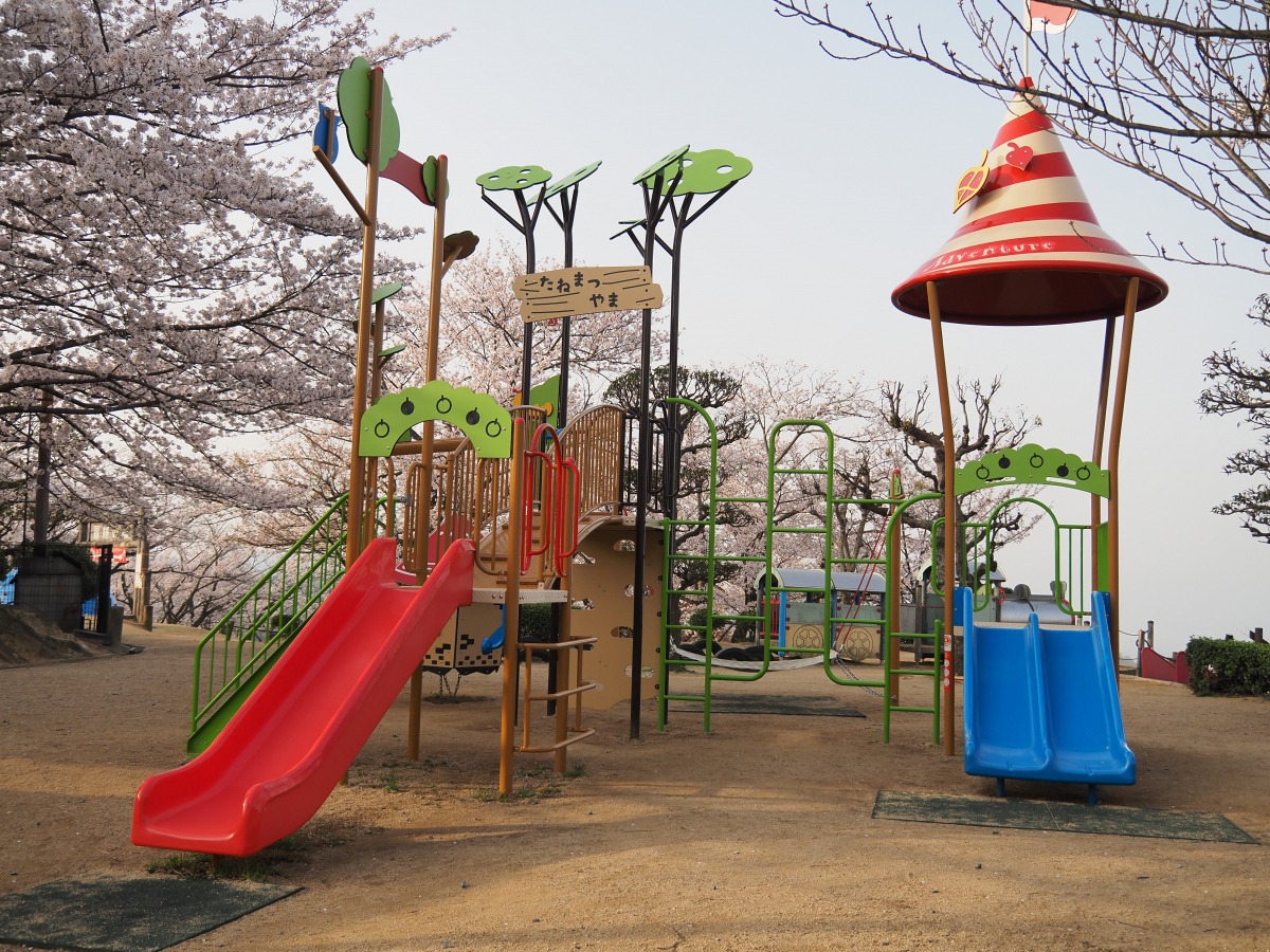 種松山公園西園地は、標高258mの種松山山頂の南西に約1kmにわたって広がる公園です。梅、桜、ツツジ、バラ、あじさいなど、季節の花が咲き誇り、特に桜のシーズンはお花見をされる方で賑わいます。お子さまが思い切り遊べるアスレチックと遊具が充実しているのも特徴です。