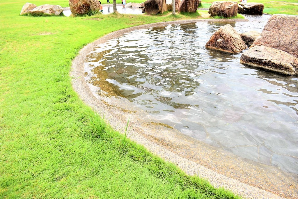 同じ水脈の地下水を使用した親水公園なので、名水で思いっきり水遊びできてしまいます。