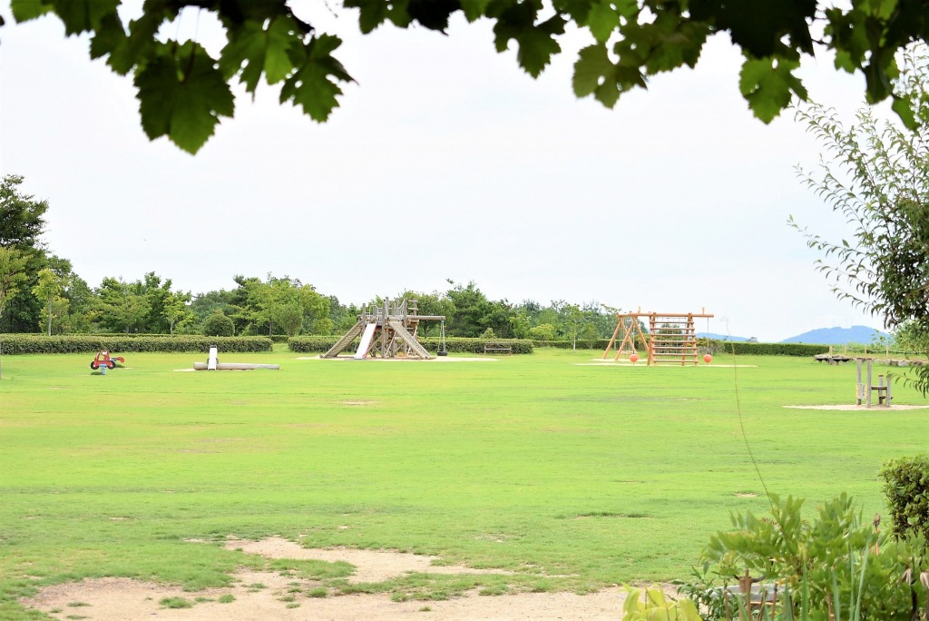 岡山空港から歩いても10分ほど。青々とした芝生の上でのびのび走り回れます。