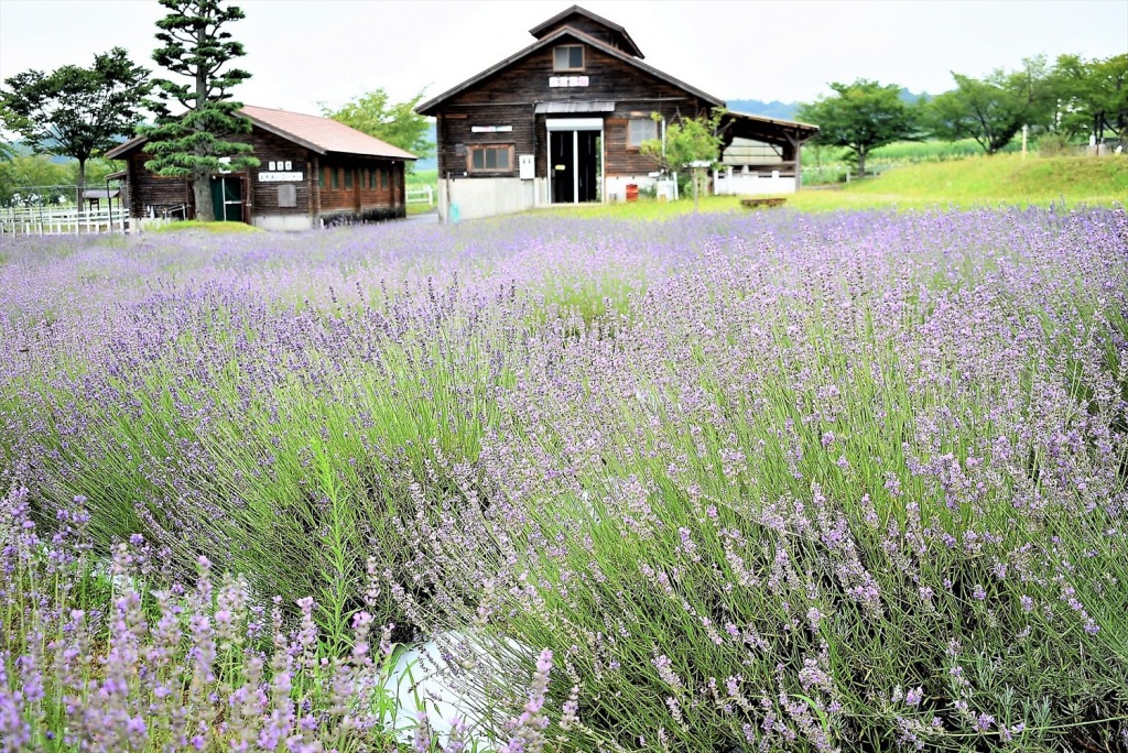 山の上の、一面のトウモロコシ畑の先にみえてくる5ヘクタールの園内には、畜産に親しめる見どころがいっぱいです。ラベンダーの見ごろは7月中旬までですが、それでもまだまだ園内はハーブの香りや色にみちていました。