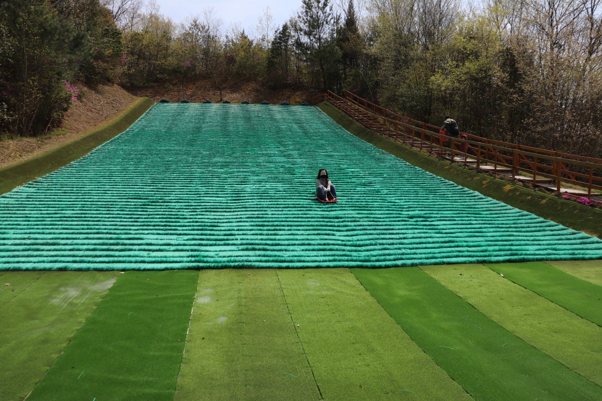 せっかくなので、年齢は気にせず、滑ってみました。誰も滑っている人のいなかったこちらのアトラクションですが、私のすべりを見て、安心してたくさんの親子連れさんがこられ、大人も子供も滑られていました。親子で乗ると、重いのでスピードが落ちます。小さな子供は、軽いので軽快に滑っていきます。子供は、慣れたもんです。その間の私は、そこそこのスピードに、バランス要注意で、走り出したら諦めて、ひたすら滑り降りました 笑。15分間の制限時間なので、滑り降りたら、ソリを持って駆け上り、5回滑りました。かなりいい運動量です。