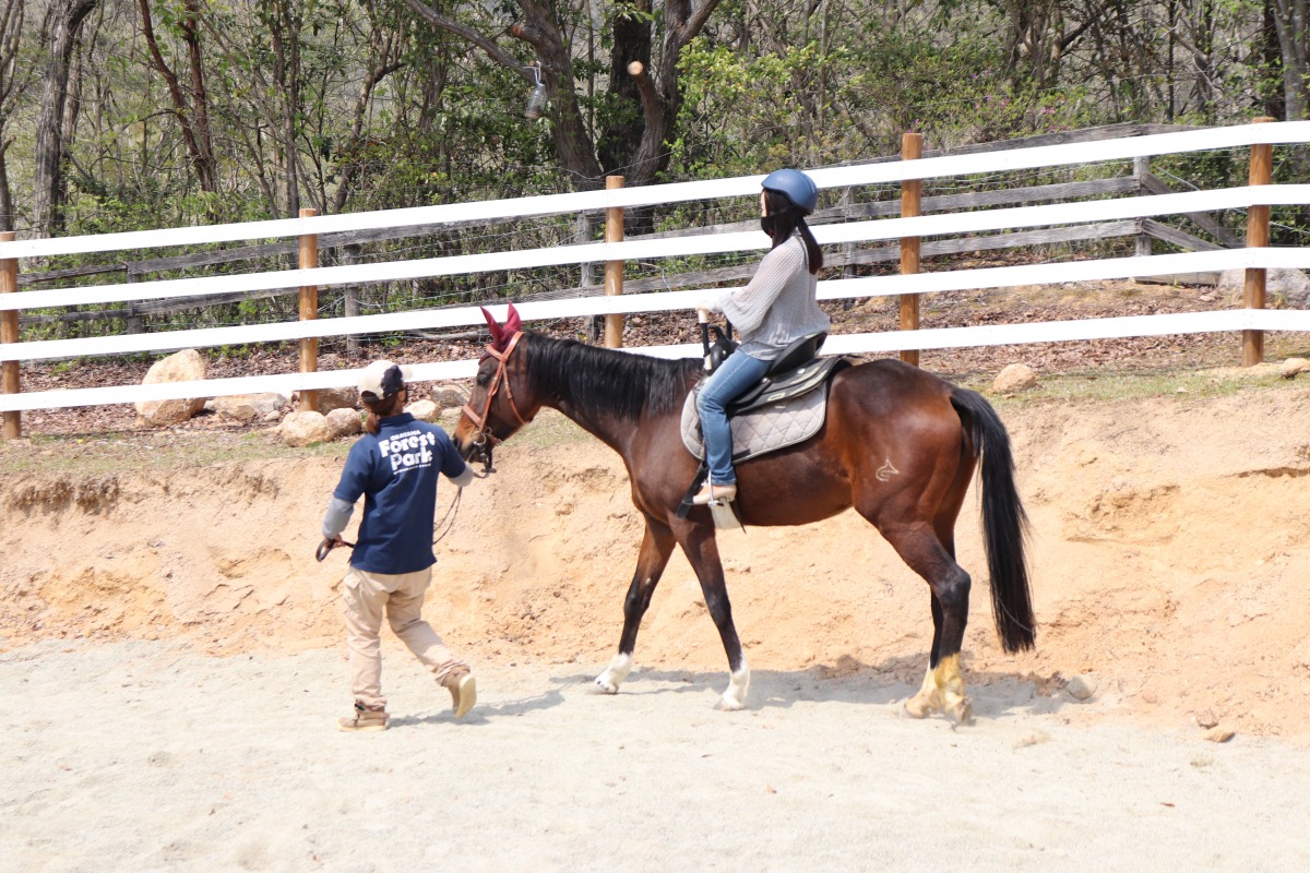 すっかりブリのついた私は、乗馬体験も!今までのハード系に比べると、かなり癒し系です。馬は、乗せる人と気持ちが通うようです。優しい馬でした。
