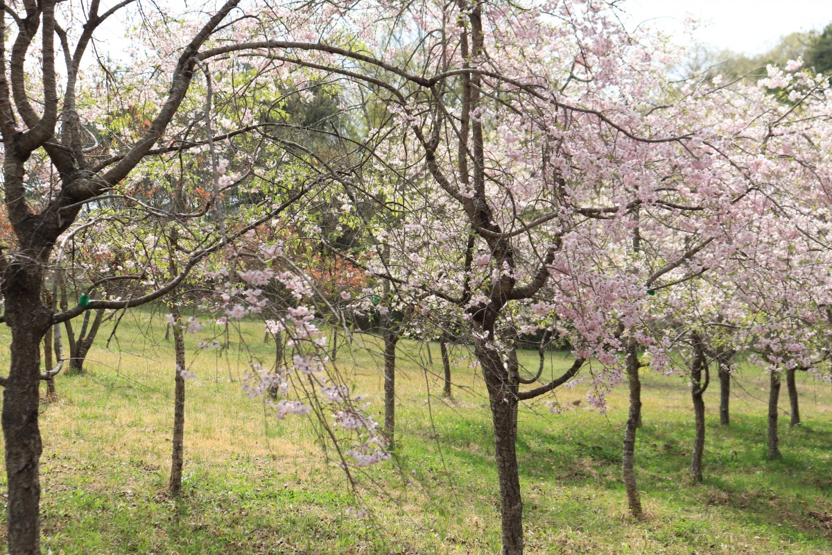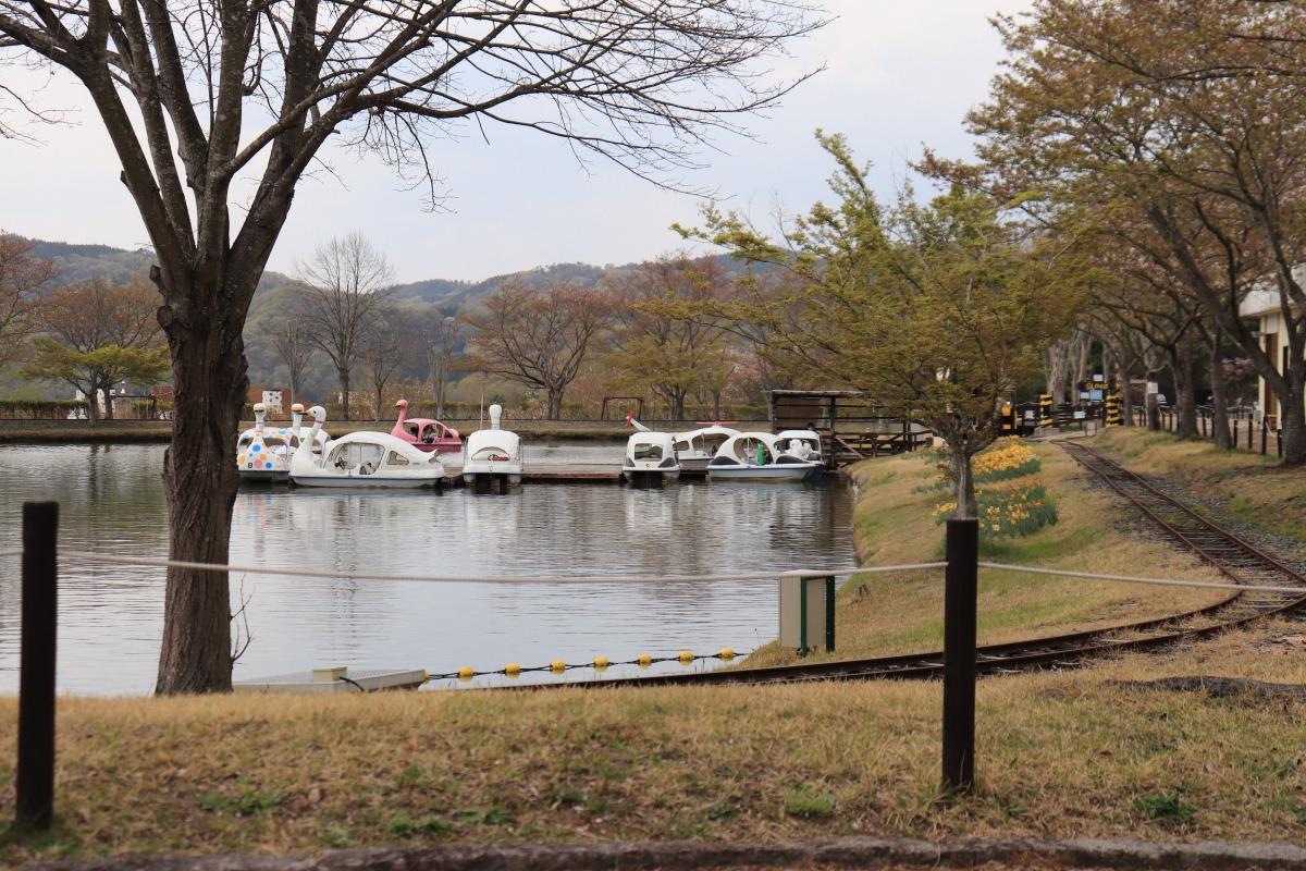 チューチュートレインに乗ったおかげで、枝垂れ桜に会えました。街中ではすでに散ってしまっているので、よけいにうれしい気持ちになりました。