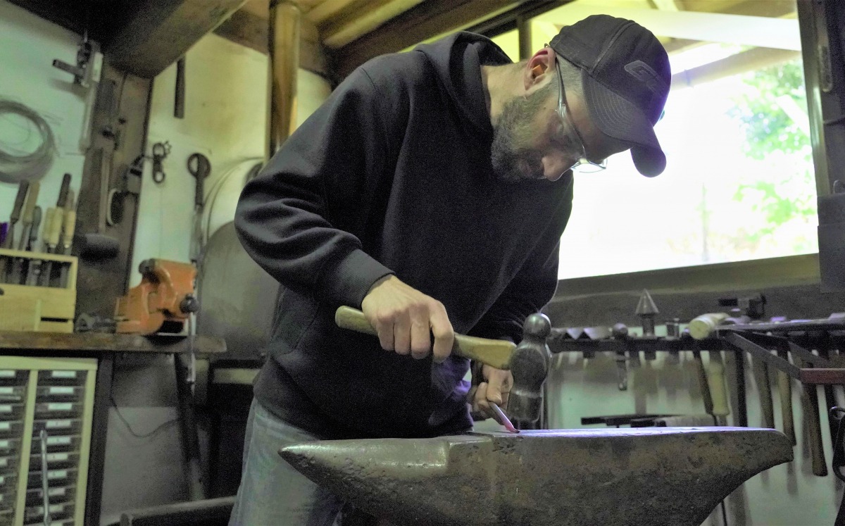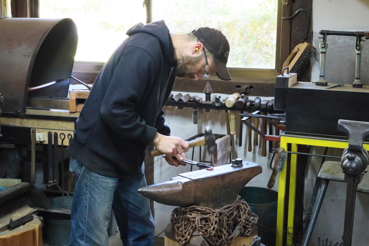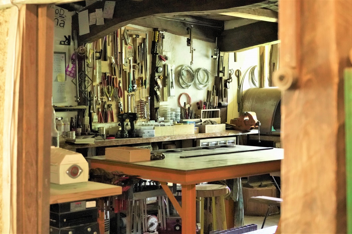 2015年に西粟倉村に移住し、今年で6年目。工房では様々なワークショップも行っており、鉄を熱して金槌で叩き、先を延ばして曲げるフック作りなら3時間程度。リファさんお手製のアスレチックがある裏山を散策するお楽しみも付いています。ほかにもオリジナルの箸や笛作り、グルーガンを使った木工体験、プチ英語留学やヨガインストラクターである亜希子さんによるヨガレッスンなど、ここでしかできない経験があります。