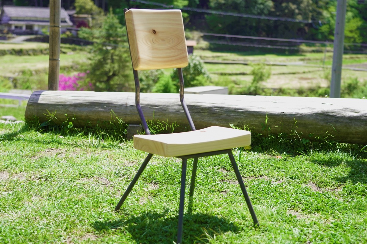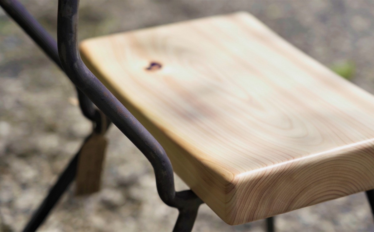 写真/アイアン部分の絶妙なカーブ、座面と背もたれの窪みで、なめらかに身体に寄り添う<ヒノキのチェア>。