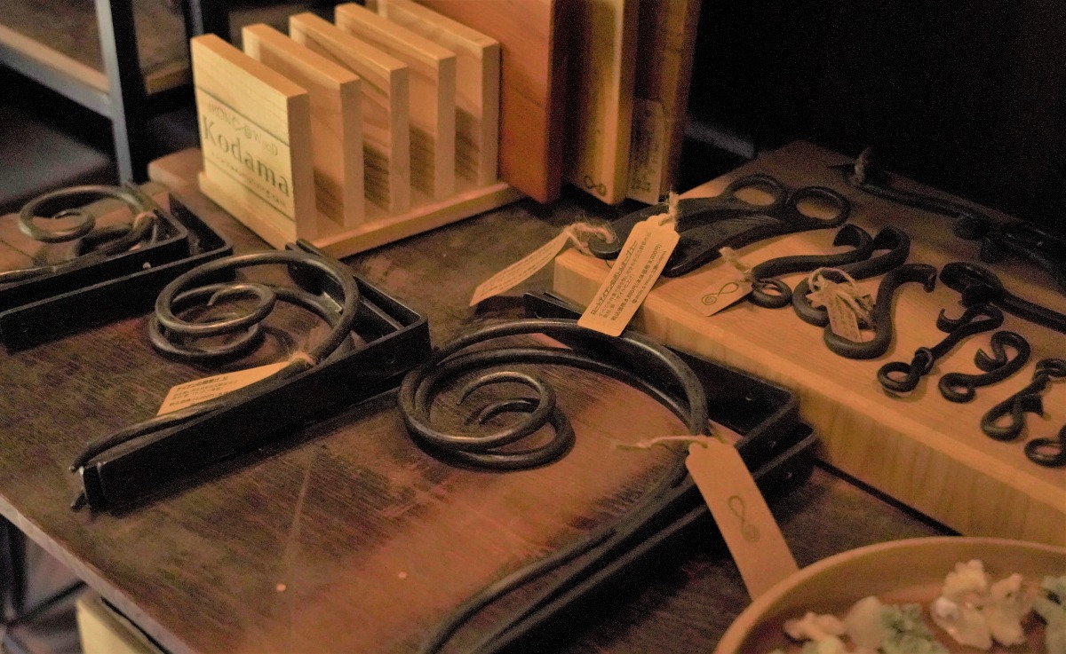 鉄と木を使って作られる「工房Kodama」のプロダクト。固く見えて柔軟な鉄と穏やかに見えて頑固な木。それぞれの素材から発せられるコトバと共鳴するようにして誕生するのは、実用的で機能的な永く使えるもの。豊かな環境と暮らしの中で生み出された唯一無二のプロダクトは、どこにあっても自然と繋がっていることを感じさせてくれます。