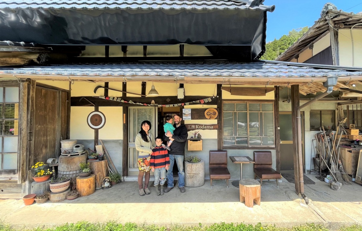 「工房Kodama」には、クリエーターのリファさんとパートナーの田邊亜希子さん、そしてオズ(桜守)くん、ミア(弥亜)ちゃん、ノガ(埜芽)ちゃん兄妹の、家族5人が暮らしています。