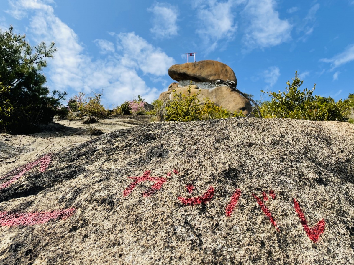 広昌山観音寺(こうしょうざんかんのんじ)の裏山にある巨石の上に新設された「天空の鳥居」。