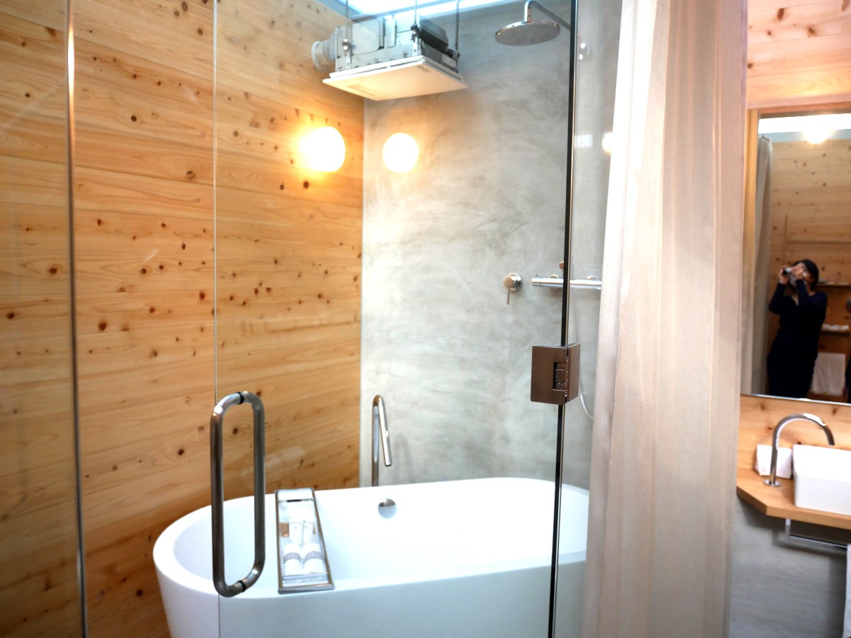 自然光が差し込むお風呂に辿り着くと、充実したアメニティの中に真庭市の工房で手づくりされた石けん「MATSURIKA SAVON」もありました。