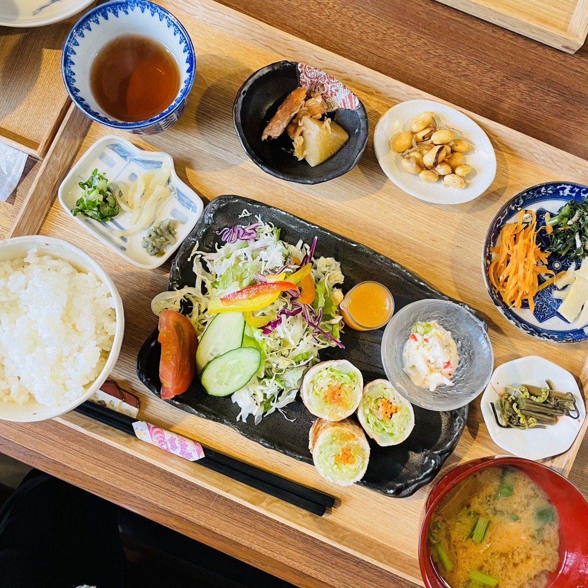 ランチは吹屋ふるさと村の一番奥にある、地元の採れたて野菜を中心に作られたお母さんのおかず。心も体もほっこりするランチが楽しめる「cafe燈」。