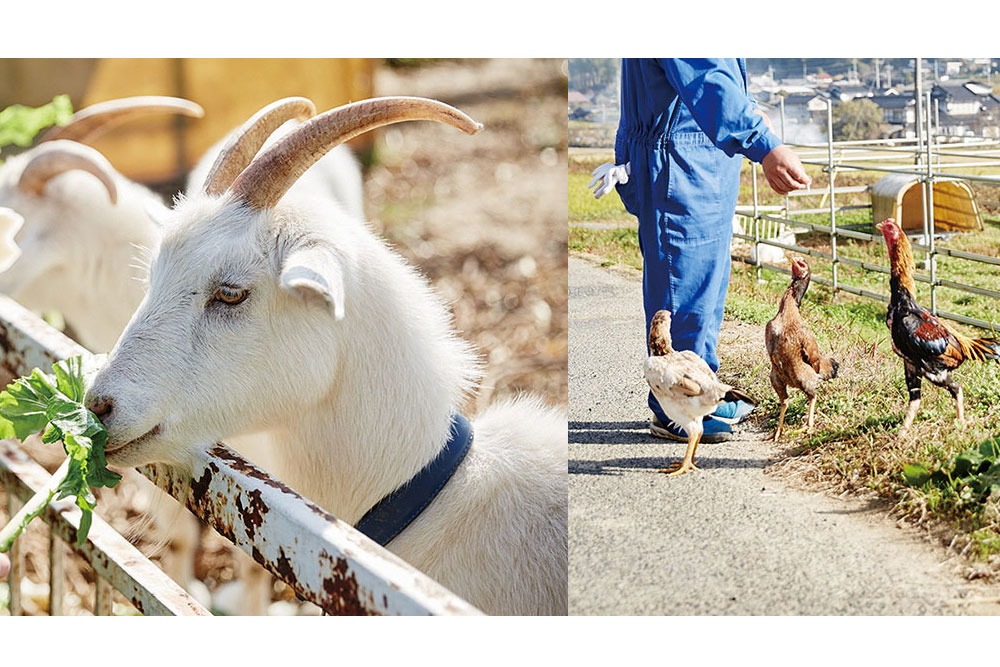 米農家の土井さんが営む「土井ん家」でできるのは、ヤギやシャモのお世話をはじめ、季節に応じて気軽なお手伝いからハードワークまで選べる農業体験やレジャー体験。食事を希望する場合は、採れたての農産物を使った居酒屋メニューが登場します。