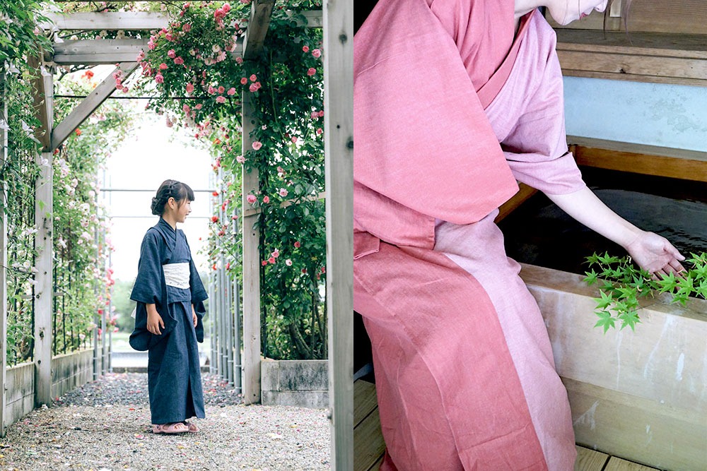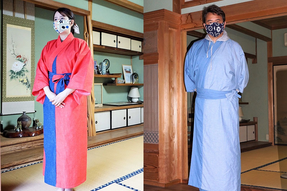 100%岡山産のデニムを使ったマイ浴衣・マイ甚平作り。和装専門の縫製工場で採寸して自分ぴったりのサイズと目的の浴衣を作りませんか? 夕涼みにはお涼み浴衣、おうち時間で楽しめるおうち浴衣。おうち浴衣は旅行に持参して使うのもあり! 大人用だけでなく子ども用も製作できるので、家族でお揃いにするのも素敵です。勝ブランド認定商品<勝手拭>や、<勝ます!ク(マスク)>も販売しているので、浴衣とコーディネートもおすすめです。