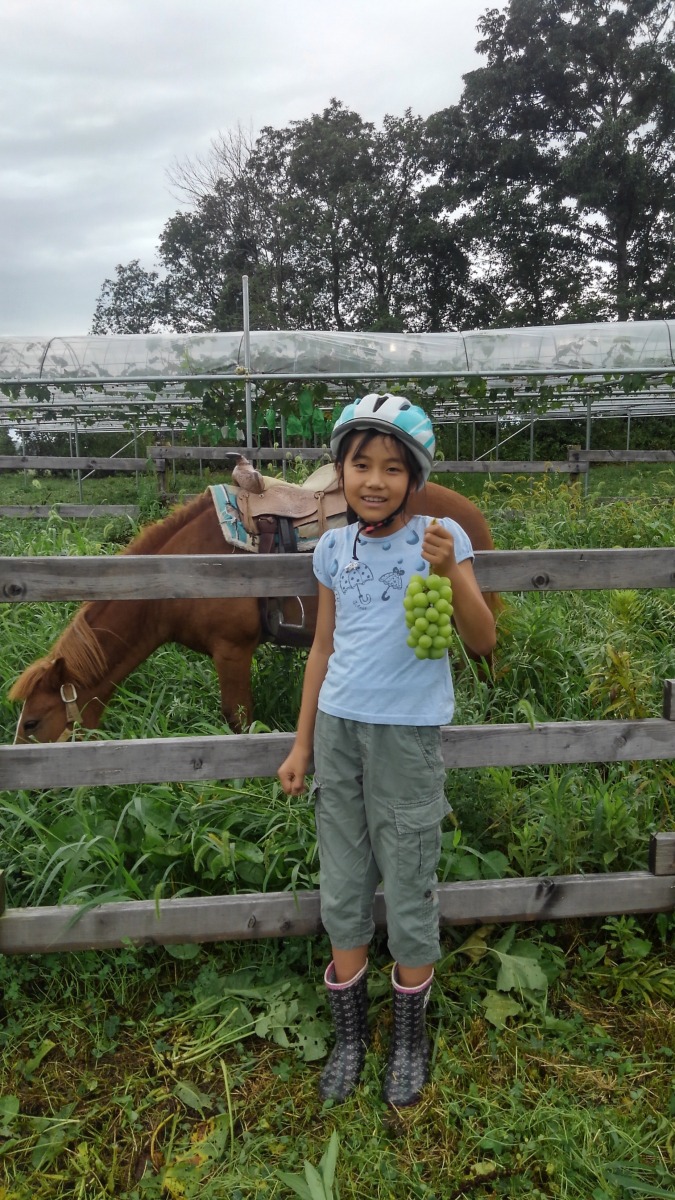 馬のボロを堆肥にしてぶどうを育てている「ウマスカット農園」まで馬に乗って移動した後は、皮ごと食べられる人気の高級ぶどうシャインマスカットの収穫体験。取り立てのぶどうは絶品!! お土産として、持ち帰ることもできますよ。馬とぶどうの異色コラボが実現した、贅沢でおいしい体験です。対象は小学生以上。