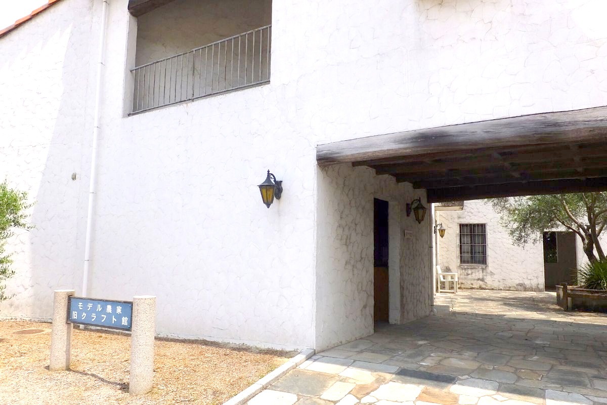 ひょうたんプールのそばにある“モデル農家旧クラフト館”。スペインの農家をイメージモデルとした建物で、外観はもちろん、内装にまでこだわった宿泊施設でした。今でも宿泊で利用できるモデル農家クラフト館は別の場所にあります。今は使われていないモデル農家旧クラフト館、進んでみると…