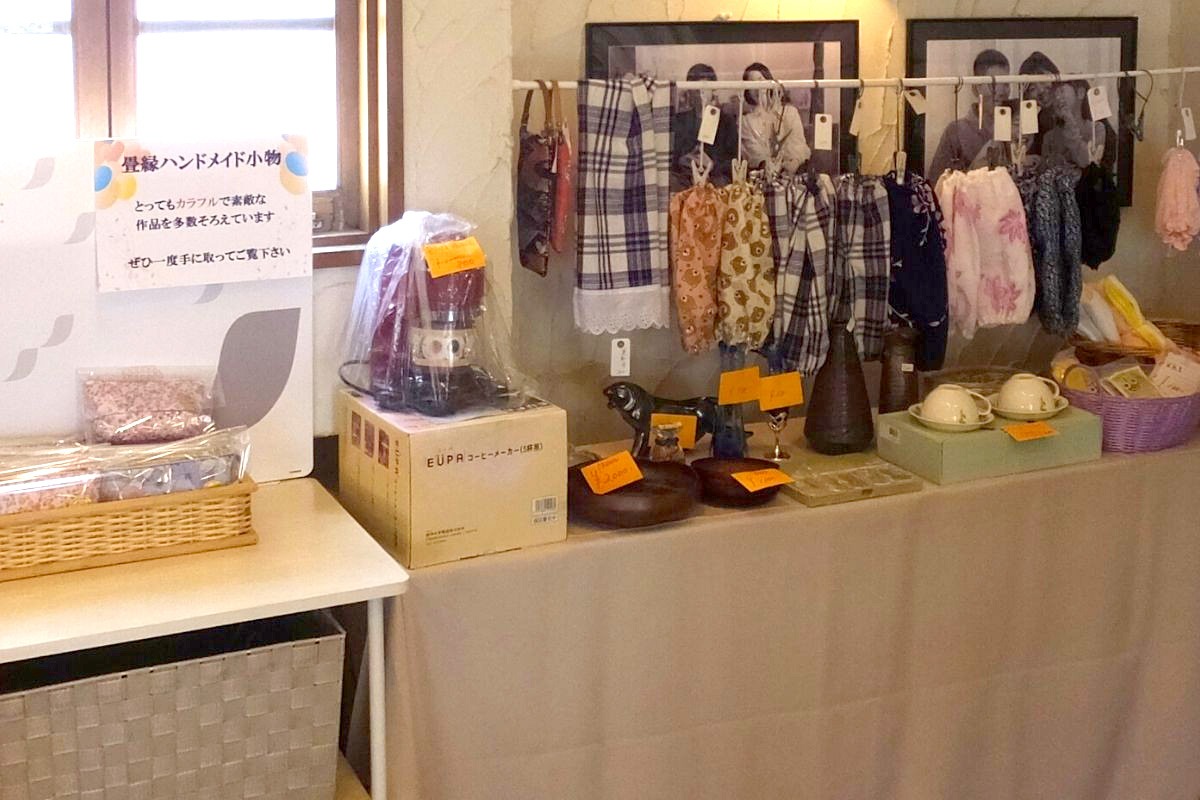 さらに店内の一角には、地元の作家さんが作るハンドメイド商品も販売されています。アームカバーやポーチなど、どれもクオリティの高い素敵な品々です。