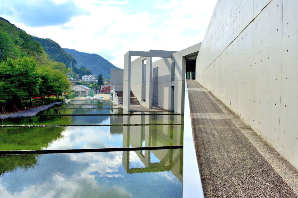 鋭角なスロープ、水を張った田んぼのような曇りのない水庭。水面に映った自然や、己と、ゆっくり対話したくなる。おそるべし、世界的建築家・安藤忠雄作品です。流水の庭を眺めながら、成羽焼きカップでいただくコーヒー。在るがままの美味しさですよ。