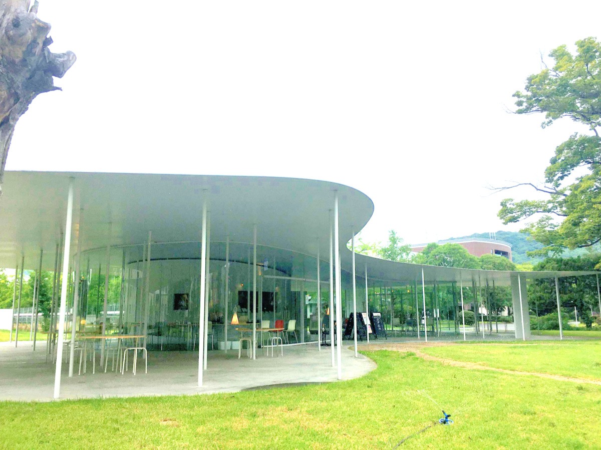 水たまりのような?流線形のプロペラのような!?白く、軽い、屋根。透明なかべには町並みが映り込んで、景色と溶け合っています。銀杏並木や人々の暮らしの中。一般でも気軽に利用ができる、ボーダレスな空間ですよ。あのルーブル美術館分館の設計も担当した、世界的建築ユニット・SANAAの作品。くつろげてしまう、抜け感です。