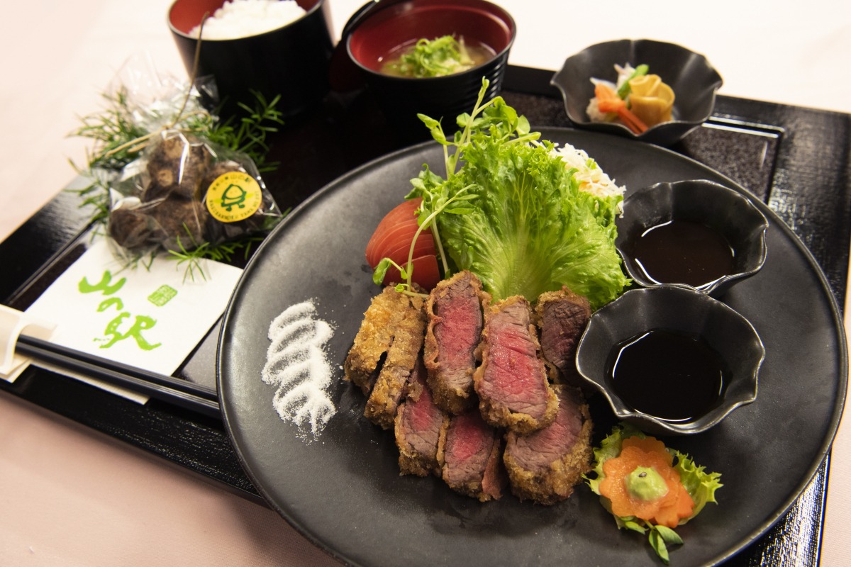 夏は緑、冬は雲海と那岐山の雄大な自然を満喫できるリゾートスポットで食べられるのが、「なぎビーフビーフカツ膳」(2,500円/3日前までに要予約)。オリジナルデミグラスソースとポン酢&わさび、天然塩などお好みの味で楽しめます。ほかにも「なぎビーフすき焼き膳」(2,000円)、「なぎビーフ牛すじ煮込丼」(1,200円)、贅沢にサーロイン150gを使った「厳選なぎビーフステーキランチ」(3,500円/3日前の17時までに要予約)などのメニューもあり。