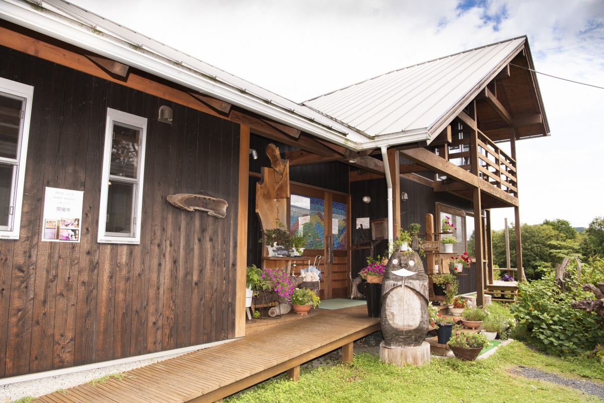 食事メニューのほかにも、そばシフォンやそばチーズケーキ、そばプリンなどのそばを使ったスイーツも評判。クリームに奈義町産のそば粉がブレンドされたオリジナルのそばソフトクリームはテイクアウトも可能です。また、店の2階にあるギャラリーでは数々の作家の作品展が随時開かれています。天気の良い日はウッドデッキでゆったり過ごすのもおすすめ。