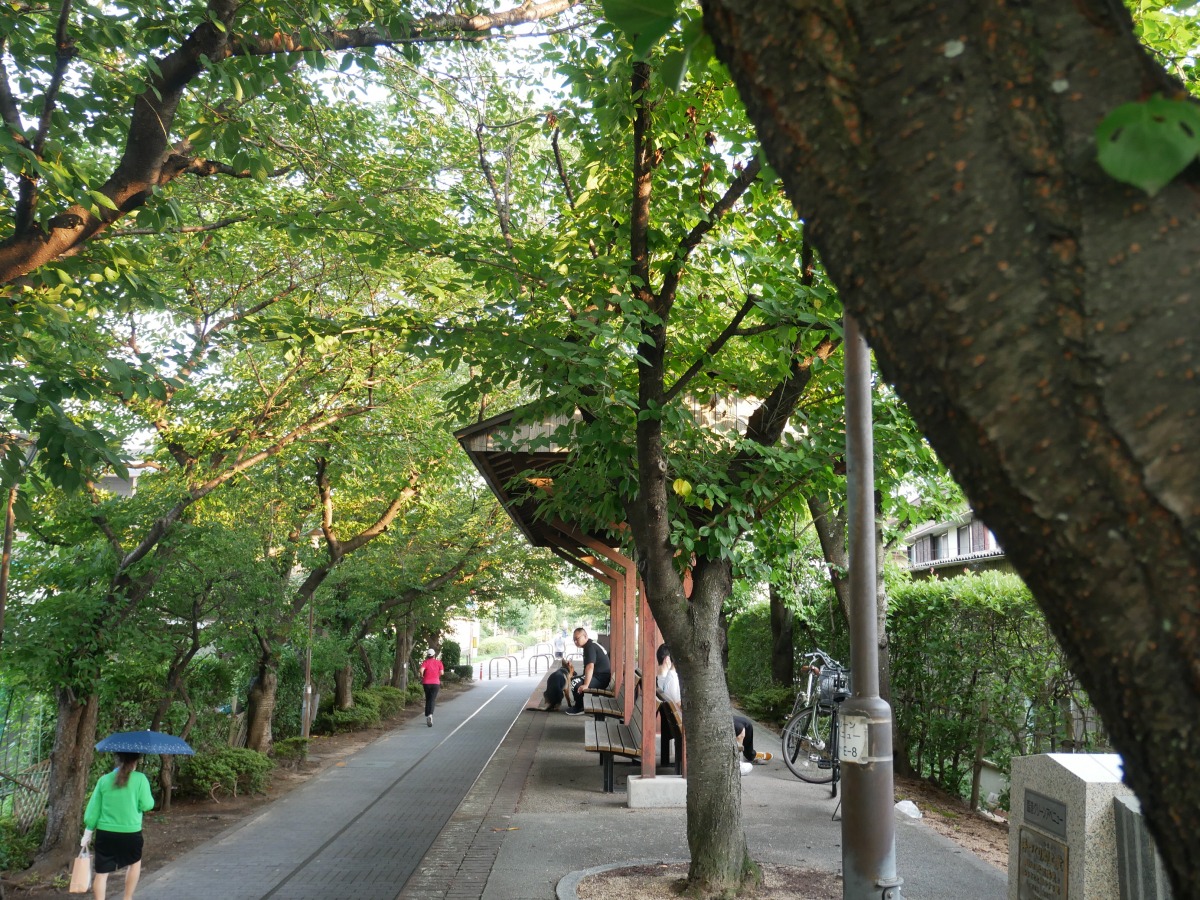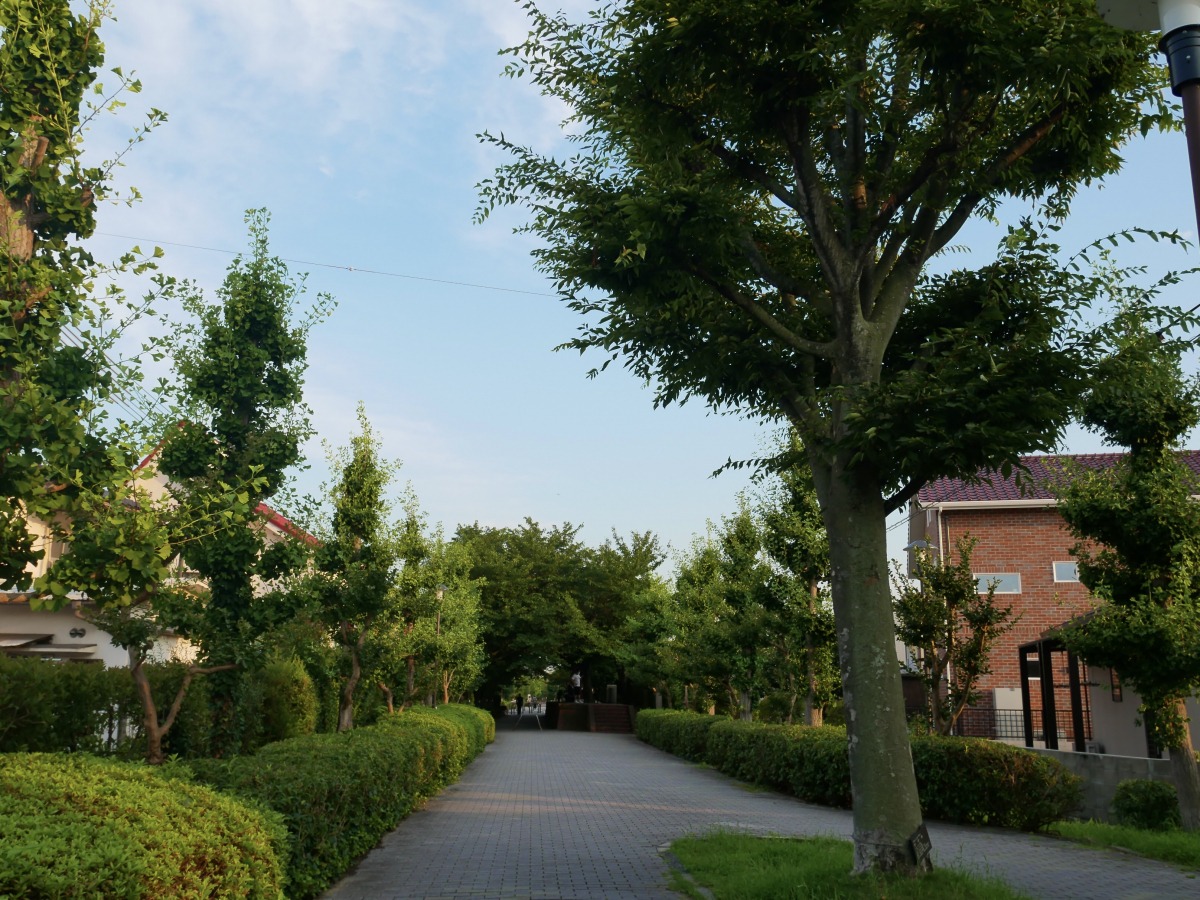 自動車が通らないこの道は、朝夕は家族やペットとの散歩、通勤通学の人々が行き交い、日中は歩道で遊ぶ子どもたち、歩道のほとりで休息する人……。夜もここを往復してランニングやウォーキングをする姿がみられます。