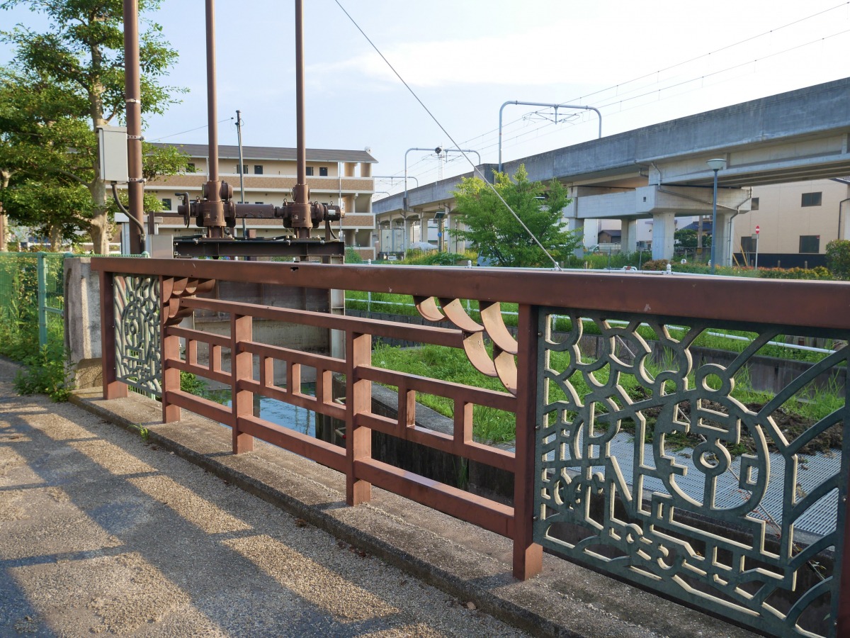 橋を渡っていると、鉄道跡地の面影がありました。このデザイン、機関車ですよね?もくもく煙をあげて走っているように見えます。煙が鉄橋のところにまで作り込まれていました。