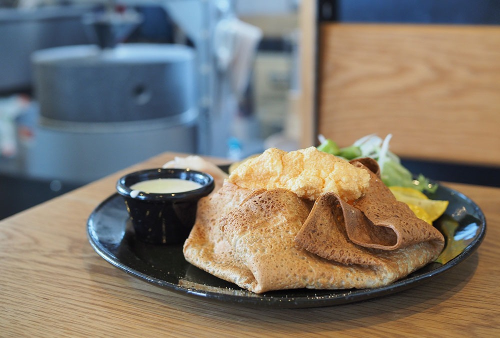 ゆっくりと丁寧に挽かれたそば粉は、豊かな香りが特徴のガレットに。ちなみにコーヒーも挽くスピードによって香りと味わいに変化が生まれるのだそうですよ。