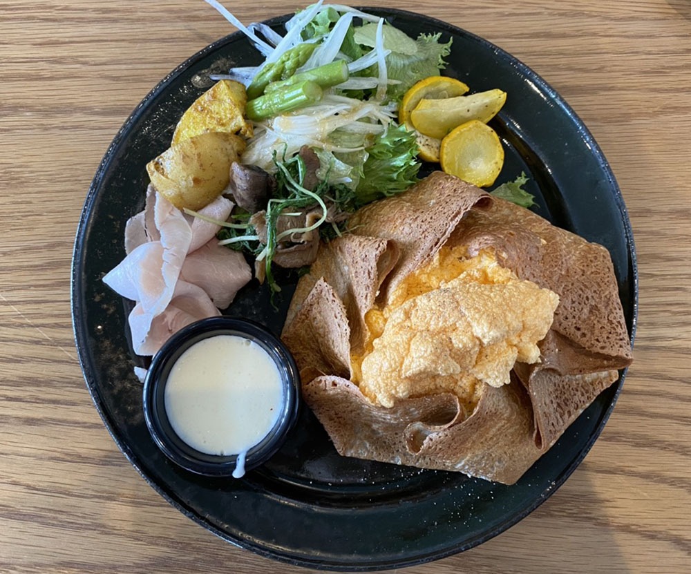 生地はガレットかクレープを選ぶことができます。ちなみにクレープに使っている小麦粉「ふくほのか」は一文字うどんで石臼製粉されたものを使用しているそう。