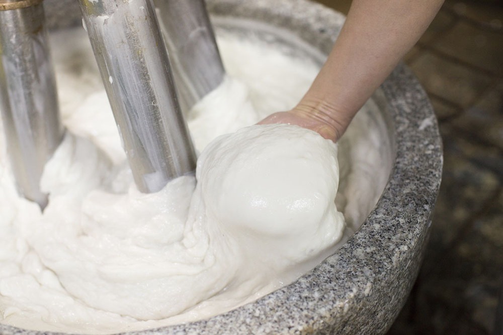 これまで石臼挽きの美味しいものを紹介しましたが、最後に紹介するのはお餅つきでおなじみの丸い石臼でつくる練り製品です。