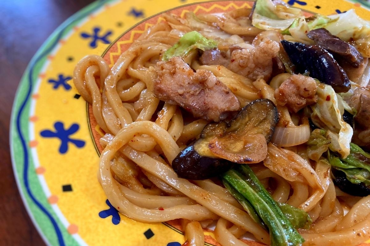 「お食事処 たかくら」さんのホルモンうどんは、約47年間変わらない秘伝のタレが美味しい一皿です。タレは濃い目で大人はもちろん、子どもにも人気な味わいに仕上がっています。さらに、うどん麺は毎朝ご主人が打っているというこだわり。ホルモンうどんに茄子が入っているのはたかくらさんのみで、ホルモンから出る上質な油を美味しく食べられるように工夫されてます。