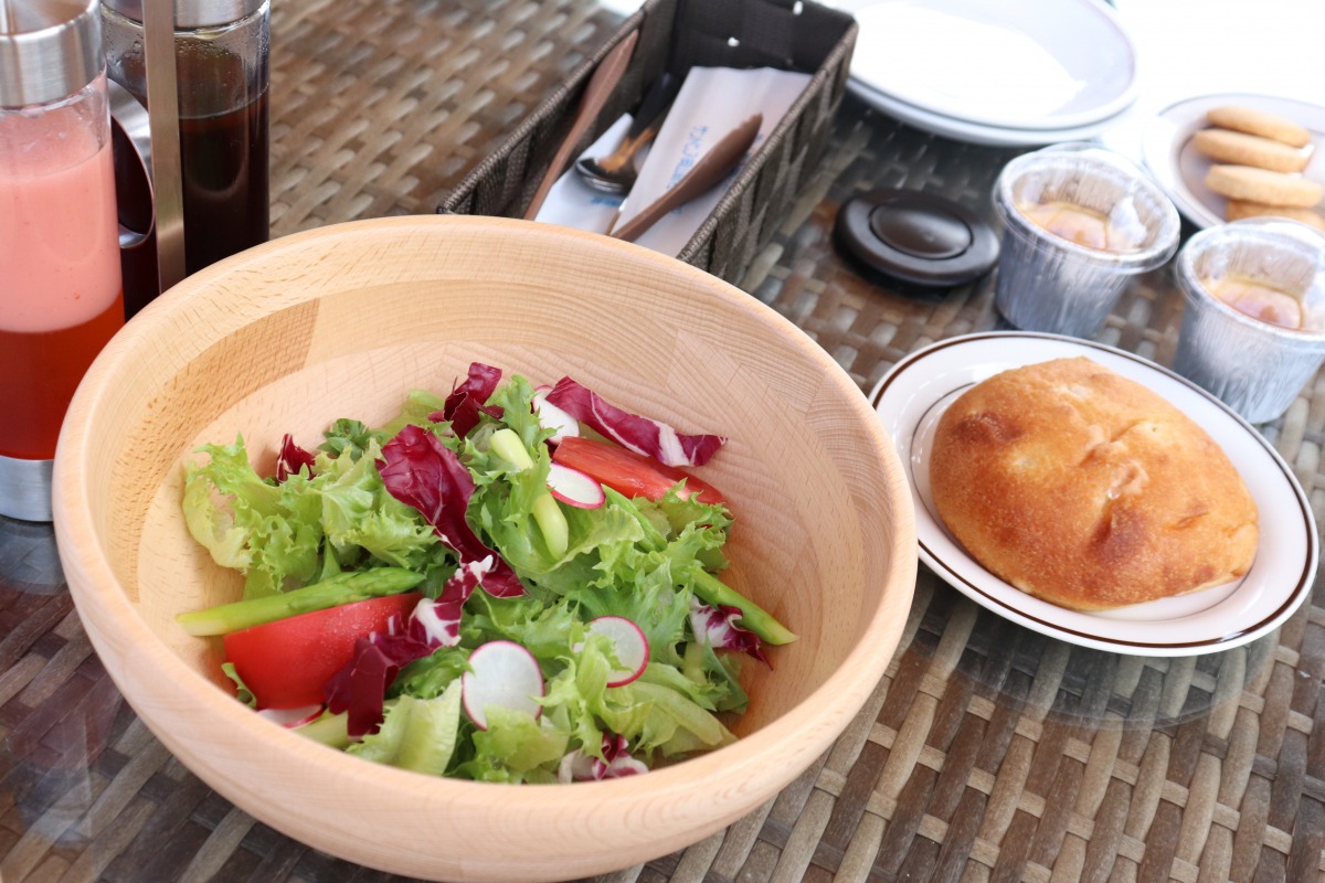 サラダは、地元、総社市で採れる新鮮なお野菜だそうです。ドレッシングのイチゴ味が美味しかったです。マシュマロは、最後に焼いて頂きます。