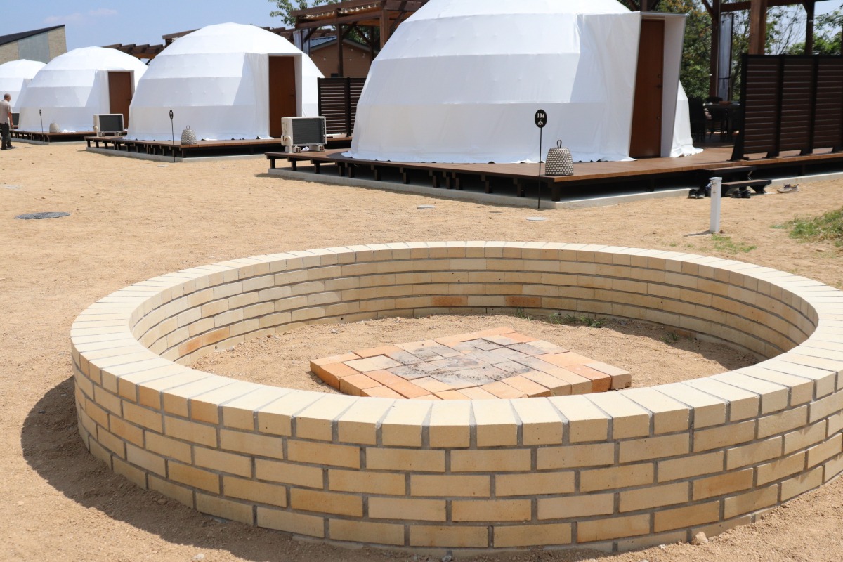ドームテントのそばに大きな円形サークルがあります。これは、キャンプファイヤーを楽しむ場所で、デザートのマシュマロを串にさして焼き立てを頂くのが美味しいそうです。