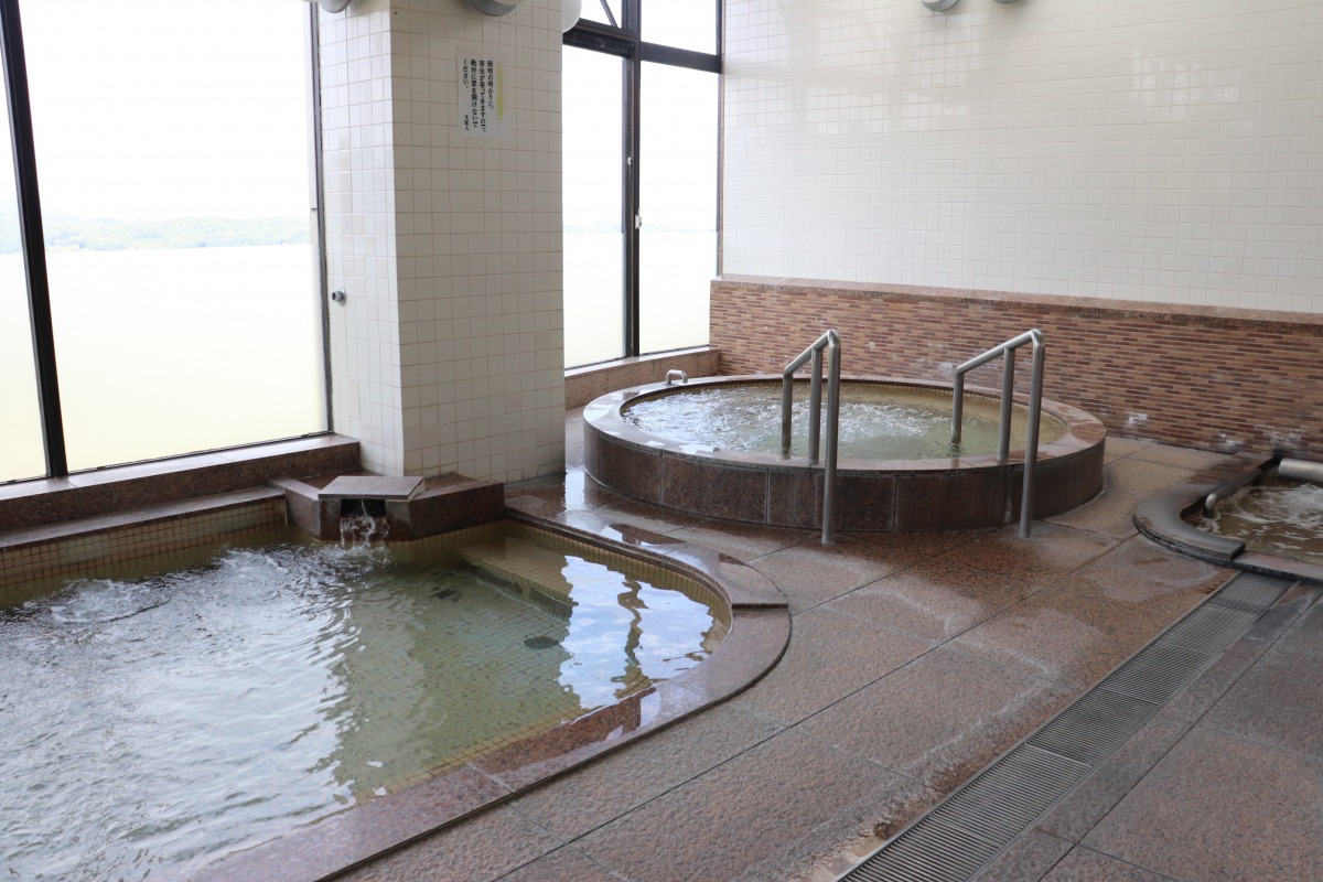 グランピングで楽しんだ後は、本館の大浴場がおすすめです。広くて、脱衣所もゆったりとしています。
